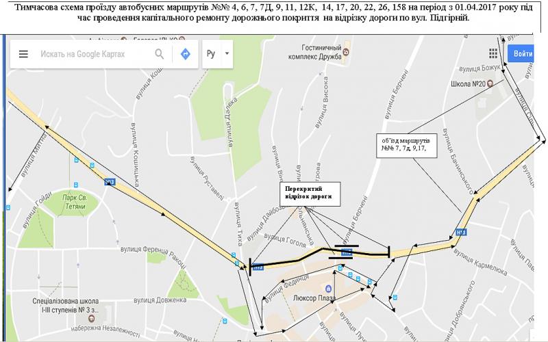 Поки триватиме ремонт, а його планують завершити у середу-четвер, 5-6 квітня, рух автобусів маршрутів № 7, 7Д, 9, 17 буде змінено – вони проїжджатимуть через вул. П. Мирного, Другетів, Сільвая, Стрільничну.