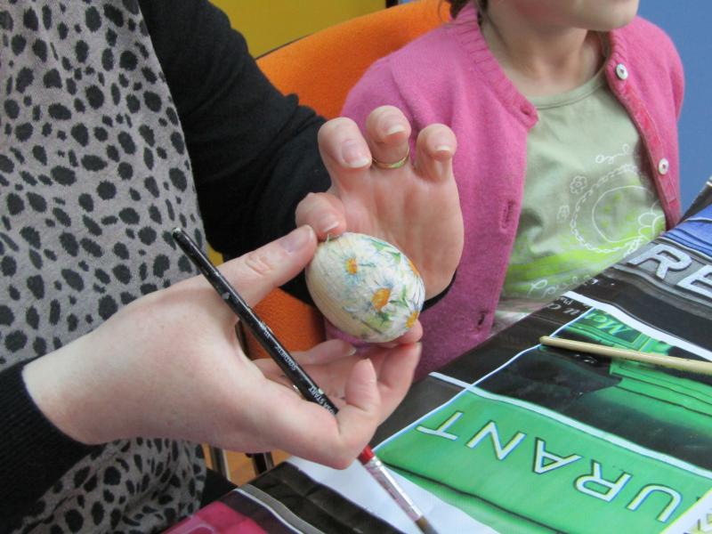Спробувати свої сили у новому для себе мистецтві прийшли, як дітки, так і дорослі. Кожен бажаючий міг виконати великодню прикрасу або безпосередньо писанку, використовуючи техніку декупажу.