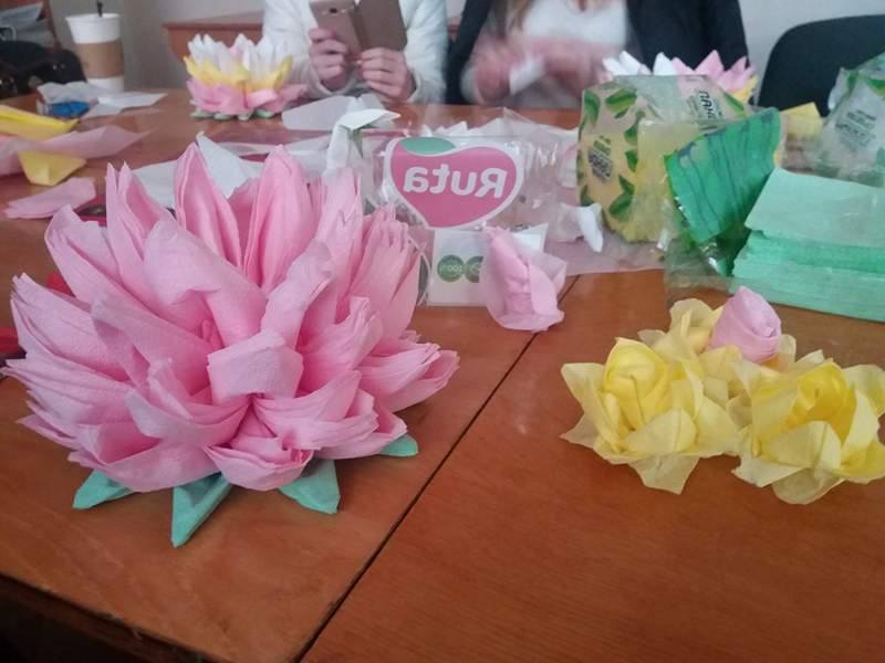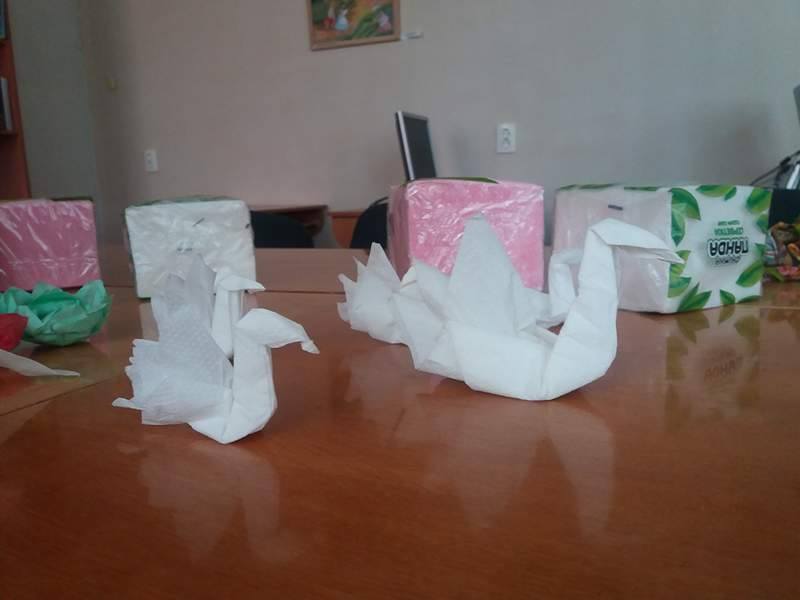 Майстер-клас провела художниця -аматор, креативна майстриня Маріанна Солтук. Завітавши на захід, охочі змогли навчитися із звичайних серветок створювати лілії, розочки та прекрасних лебедів.