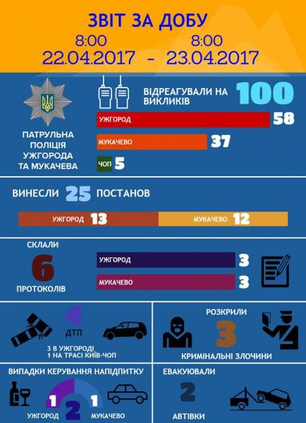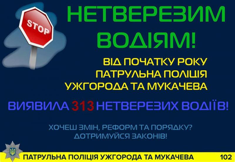 Короткий звіт за добу та дані стосовно затримання нетверезих водіїв з початку року опублікувала Патрульна поліція Ужгорода та Мукачева