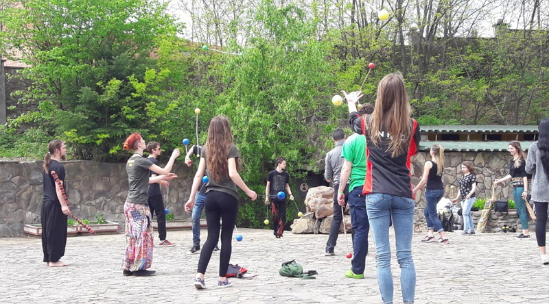 Зараз на території амфітеатру тривають різні майстер-класи для всіх, хто зважиться спробувати себе в ролі актора театру вогню, інформує прес-служба Ужгородської міськради.