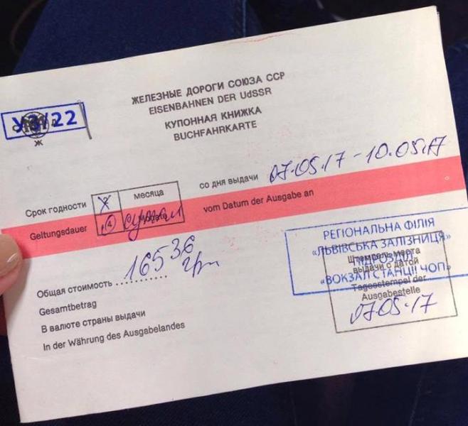 — 7 травня 2017 року, м.Чоп, залізничний квиток з України за кордон. Я не жартую. Щойно сіли у вагон. Декомунізація? Ні, не чули! Але ж людоньки добрі, з часу незалежності минуло чверть століття! Слів нема(((((, - йдеться у дописі пані Наталії, інофрмує Мукачево.net.