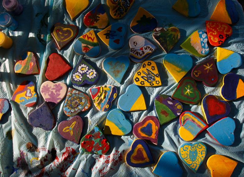 Ужгородська малеча розмальовувала сердечка-обереги для бійців АТО