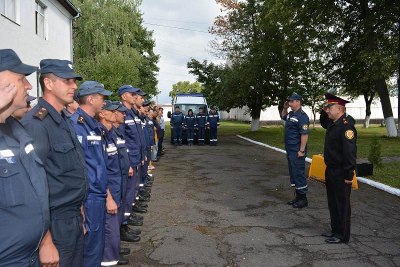 Перший заступник начальника Управління Держслужби з НС полковник служби цивільного захисту Володимир Ціцей, поспілкувавшись з кожним рятувальником, що вирушає у небезпечний регіон, особисто переконався у забезпеченні необхідними засобами індивідуального та медичного захисту особового складу і всім необхідним екіпіруванням. Після цього проінструктував особовий склад, особливо наголосивши на дотриманні заходів безпеки при виконанні робіт за призначенням та нагадав про сувору дисципліну, а також побажав щасливого повернення.
