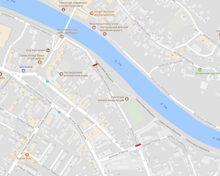 Завтра, у середу, 13 вересня, перекриють для проїзду автотранспорту частину вулиці Руської і набережної Православної (від перехрестя Руської з Робочою і до пішохідного мосту, поруч із Генеральним консульством Угорщини в Ужгороді).