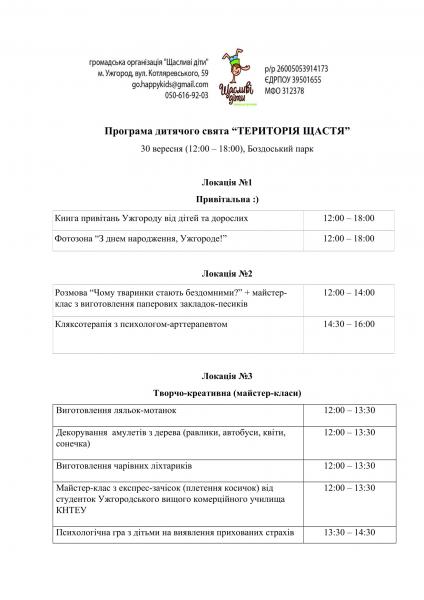 Свято "Територія щастя" відбудеться у суботу в Ужгороді!
