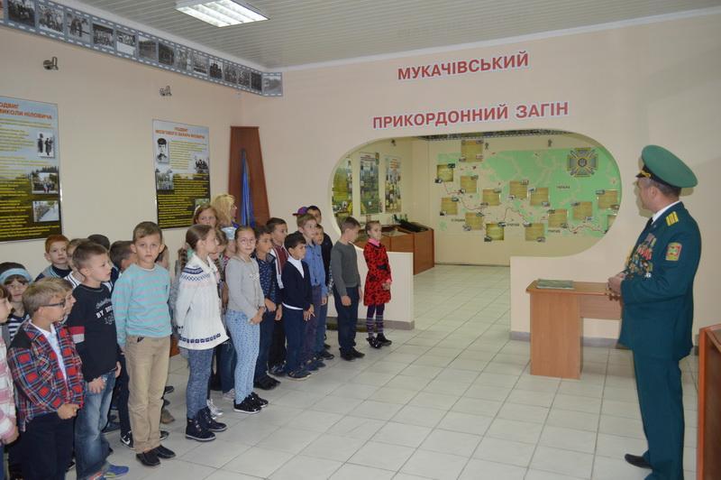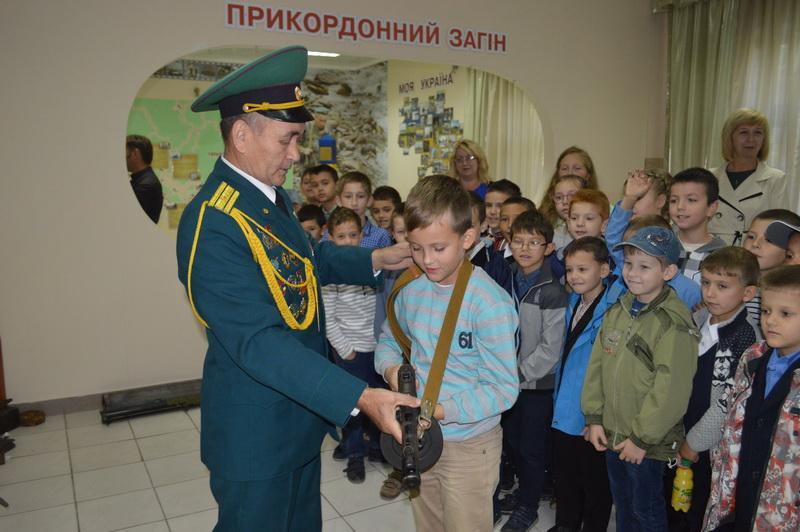Охоронці кордону розповіли дітям про свої повсякденні обов’язки та тонкощі служби, а ще запросили їх у музей, в якому знаходиться багато цікавих експонатів: фотографій, медалей, зразків зброї часів Другої світової війни, а також кілька предметів та елементів озброєння, які були привезені військовослужбовцями загону із зони проведення АТО.