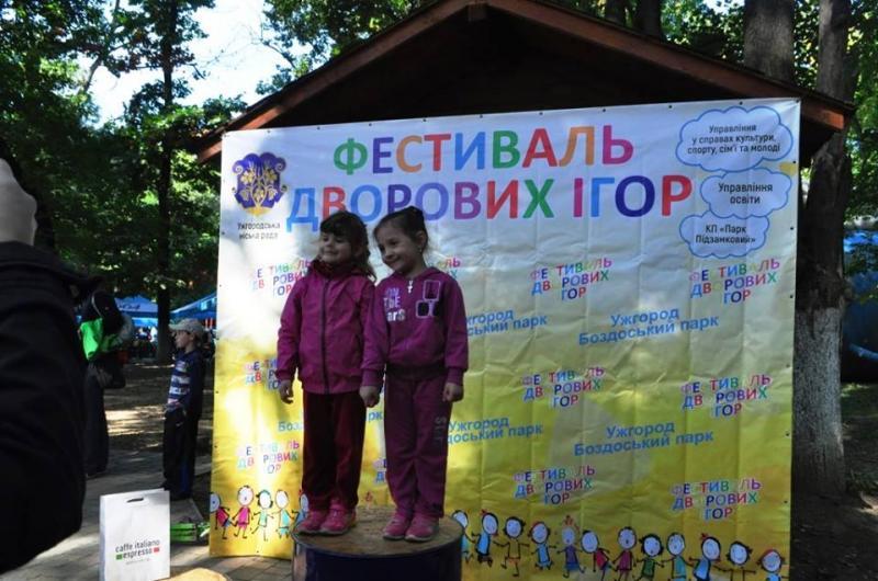 На просторій же зеленій галявині розгорнулася «Територія щастя» від ГО «Щасливі діти». Саме сюди, наче до центру дитячого розвитку та розваг, вели батьки своїх чад. І тут було, на що подивитися, чому повчитися і чому радіти. Дітвора вітала рідне місто Ужгород з Днем народження – малювала листівки, стіннівки, виготовляла тематичні сувеніри, робила світлини біля святкової фотозони. Неймовірне захоплення викликала локація, де дітей знайомили із робототехнікою. А ще юні гості свята вивчали іноземні мови та мову жестів, малювали та займалися художнім розписом, виготовляли ляльки-мотанки та будували замки з піску. Дорослі та маленькі займалися зумбою просто неба, а ще могли завітати до «салону краси» на експрес-зачіску. Дорослим же запропонували долучитися до тренінгів та відкритих лекцій з дитячої та сімейної психології. «Ми раді, що сьогодні тут зібралися стільки відвідувачів – від наймолодших дітлахів до їхніх батьків та бабусь із дідусями. Надихає й те, що сюди прийшли не лише відпочивати, але й багато небайдужих людей долучилися і допомогли реалізувати цей задум. День міста у якості чудового привода, прекрасне місце для проведення дитячого свята доповнила й тепла осіння погода. Свято вдалося, про що свідчить така кількість щасливих дітей!», – зазначив заступник Ужгородського міського голови Олександр Білак, який завітав на Фестиваль дворових ігор.