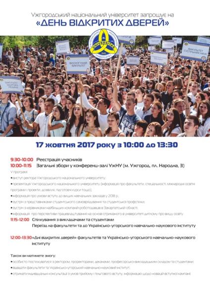 У понеділок, 17 жовтня, Ужгородський національний університет відкриє двері для закарпатських школярів.
