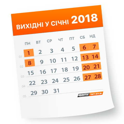 Крім того, 7 січня вся Україна відзначатиметься Різдво Христове. Оскільки свято припадає на неділю, то в понеділок, 8 січня, українці також будуть відпочивати.