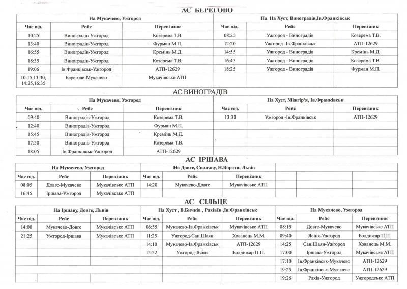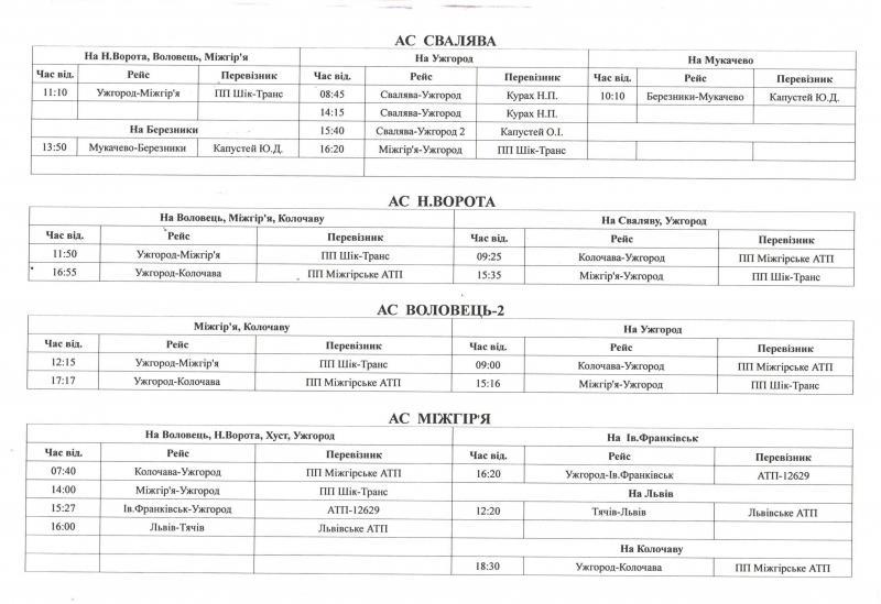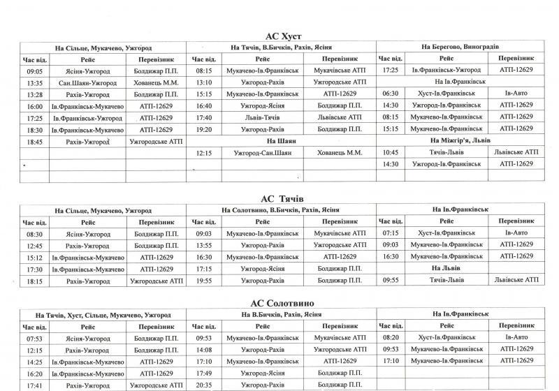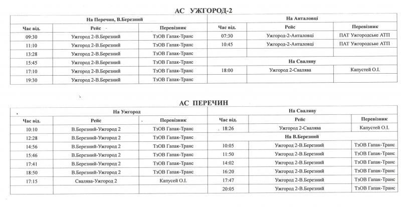 Відповідний розклад розміщено на веб-сайті ПрАТ «Закарпатавтотранс» http://zakavto.com.ua та на офіційному сайті Закарпатської ОДА.