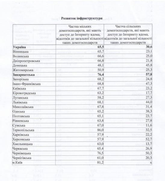 – Частка сільських домогосподарств, які мають доступ до інтернету вдома, становить в області 57,8 відсотків, і це найвищий результат по Україні, – повідомляє Геннадій Москаль. – На другому місці Херсонська область (52,7%), на третьому – Чернівецька (50,3%), а на останньому – Сумська (11,6%). В середньому по Україні 30,6 відсотків селян мають доступ до інтернету вдома. Щодо мешканців міст кількісні показники набагато вищі. Лідерами є Тернопільська область (яка випередила навіть Київ) – 86,0%, Київ – 81,2%, Чернівці – 76,5% і Закарпаття – 76,4%. Найменший доступ до інтернету вдома зафіксовано у містян Житомирщини – 50,9%.