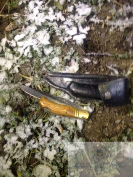Ніж довжиною 25 см, схожий на холодну зброю, поліція вилучила та направила для проведення експертизи до науково-дослідного експертно-криміналістичного центру.