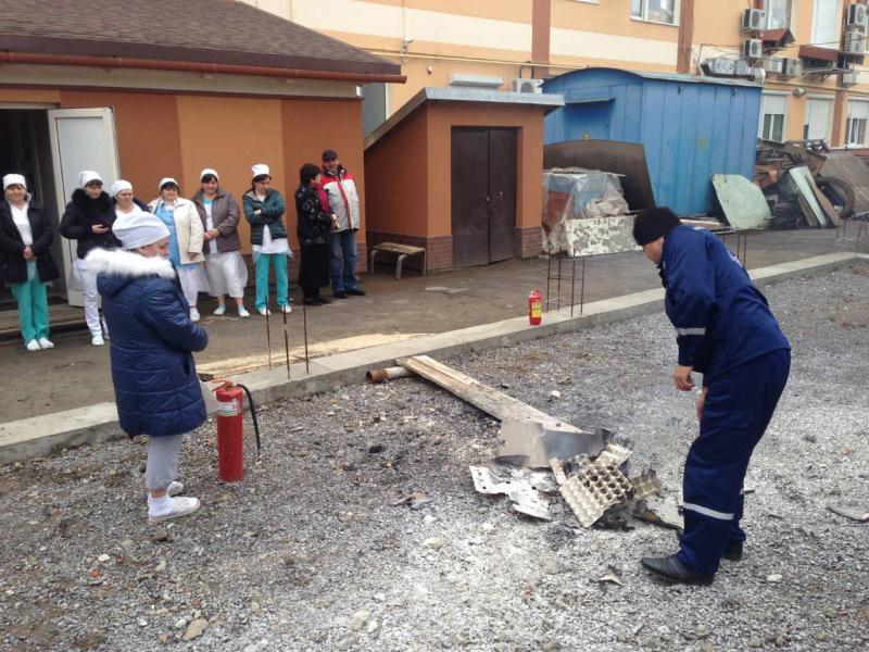 Під час навчань всім присутнім було продемонстровано принцип роботи з вогнегасником, тож усі бажаючі могли потренуватися загасити умовну пожежу первинним засобом пожежегасіння.