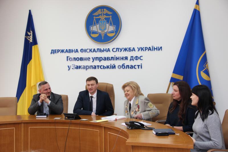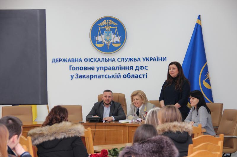 Представляли фіскальну службу та взяли участь у зустрічі з майбутніми міжнародниками-економістами краю: Олексій Петріченко – начальник ГУ ДФС у Закарпатській області, Юрій Сакалош – заступник начальника ГУ ДФС у Закарпатській області та Наталія Подойма – заступник начальника управління – начальник відділу супроводження судових спорів за позовами органів ДФС юридичного управління ГУ ДФС у Закарпатській області.