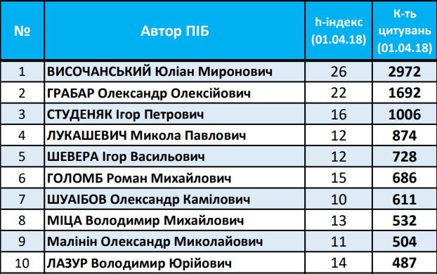 Перша сотня найкращих ужгородських науковців за версією Google Scholar