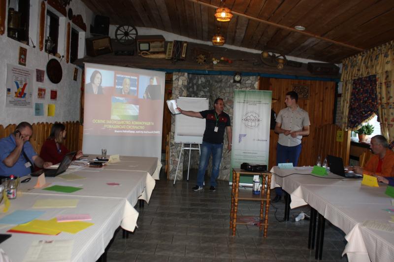 Тренери проекту Кристина Червеняк, Євген Ясінський розкрили аспекти розвитку громадських інститутів національних меншин Закарпаття та їх роль у захисті прав національних меншин, а також виховання толерантної особистості в полікультурному регіоні.