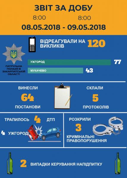 Загалом протягом доби патрульна поліція відреагувала на 120 викликів.