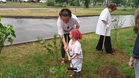 Їх напередодні висадили учні четвертого класу, вчителі, працівники бібліотеки та члени ініціативної групи проекту «Сокоти свій варош». Організатори заходу зазначають, що висадили алею на знак поваги до внутрішньо-переміщених осіб, які проживають в місті Ужгород більше чотирьох років. «Оскільки місто Донецьк вважався «містом мільйона троянд», юні і дорослі волонтери та члени ініціативної групи проекту «Сокоти свій Варош» висадили декоративні рослини в «Алею єднання», як символ Донеччини, що дасть змогу ВПО мати в місті символічний куточок своєї «малої Батьківщини». Спільна праця допомогла пробудити відчуття відповідальності за навколишнє середовище і привернути увагу жителів навколишніх будинків, які змогли долучитися до цього заходу, а також допомогла людям познайомитись та подолати упередження й стереотипи обох сторін» - зазначають учасники ініціативної групи на сторінці проекту у соціальній мережі Фейсбук.