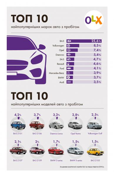 Топ 10 найпопулярніших марок авто з пробігом 2018: