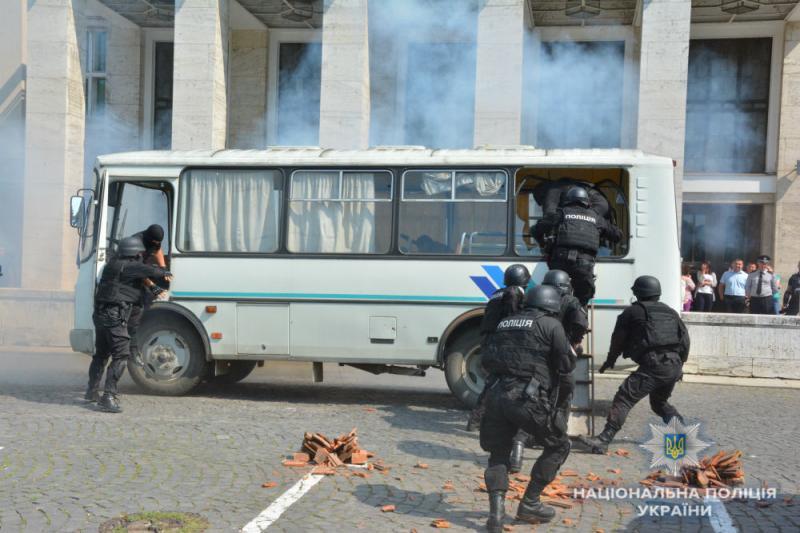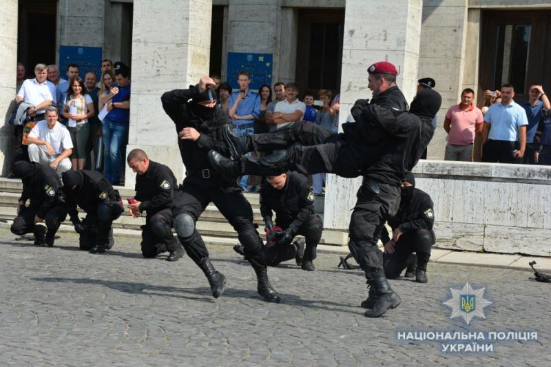 Найкращим працівникам поліції вручили грамоти і подяки Міністерства внутрішніх справ, Національної поліції України та відзнаки органів місцевого самоврядування. Після урочистостей для всіх присутніх підготували показові виступи спеціалісти кінологічного центру ГУНП в Закарпатській області, рота поліції особливого призначення та спецпризначенці «КОРД». Правоохоронці продемонстрували різні способи затримання злочинців, пошук заборонених предметів та навіть звільнення заручників і штурм транспортного засобу.