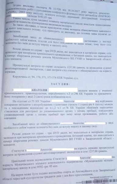За словами ужгородця, 2 роки умовно йму дали за хуліганство та опір правоохоронцям. Також, він планує подавати апеляцію на рішення суду.