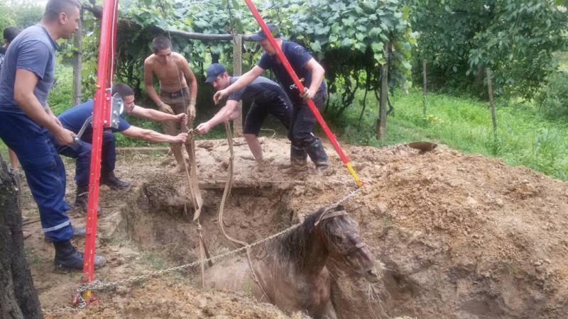 На Виноградівщині рятувальники з глибокої ями витягли... коня