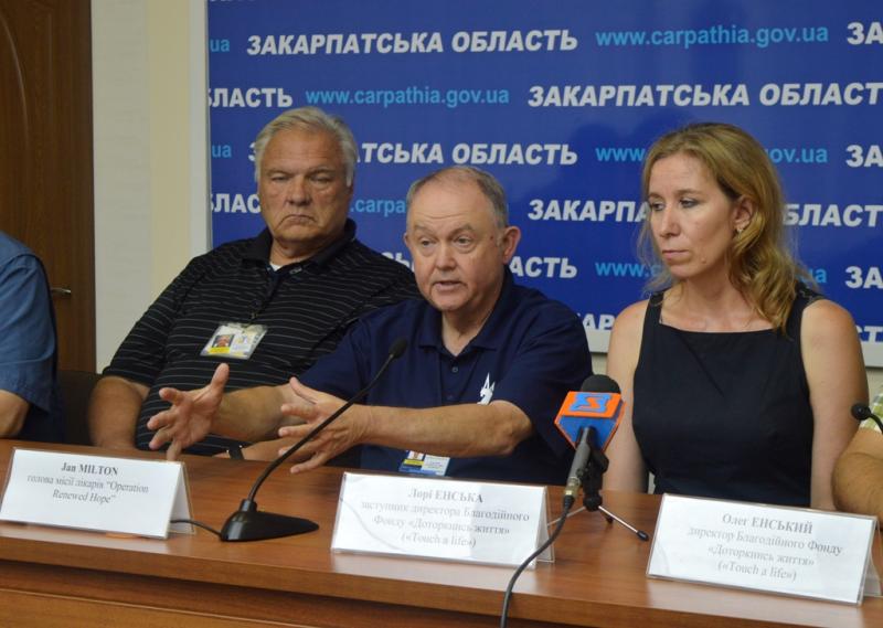 З журналістами зустрілися голова Місії Ян Мілтон, директор Благодійного фонду «Доторкнись життя» («Touch a Life») Олег Енський та його заступниця Лорі Енська, лікарі Місії Гері Гібсон та Стівен Дерш.