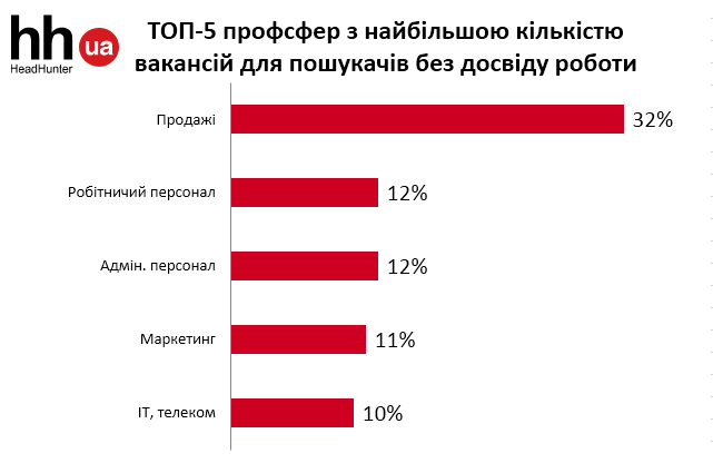 Найбільше вакантних пропозицій для молодих спеціалістів у таких профсферах, як «Продажі», «Робітничий персонал», «Адмін. персонал», «Маркетинг» та «ІТ, телеком». Причому на позиції у сфері «Продажі» кандидатів шукають більш активно.