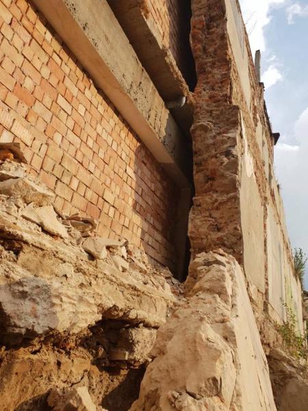 Поруч проводяться будівельні роботи і при ритті котловану порушили фундамент цієї будівлі, фундамент якої із каміння на глиняному розчині та стіну, зведену з повнотілої одинарної цегли.