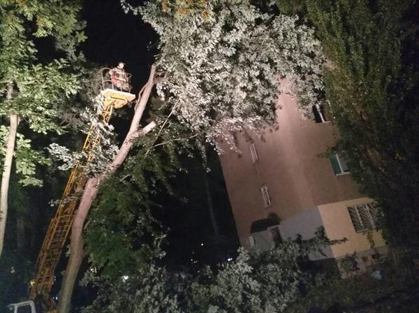 В Ужгороді рятувальники з комунальниками ліквідовували наслідки падіння дерева на 4-поверховий будинок