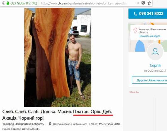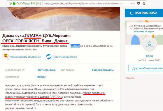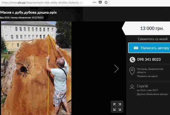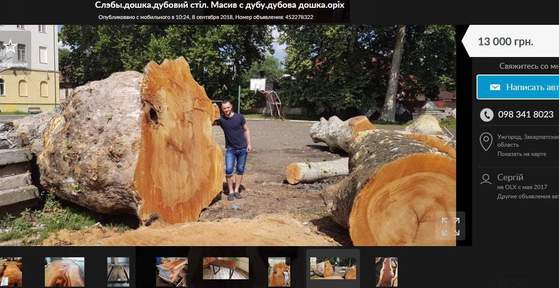 До того ж, на одному з оголошень виставлені фото, де ділки на фоні недавно зрізаного платану саме у загальноосвітній школі № 1 міста Мукачева. Як ця деревина попала з рук Управлінням міського господарства м. Мукачево на "чорний ринок" для мукачівців поки що не зрозуміло.