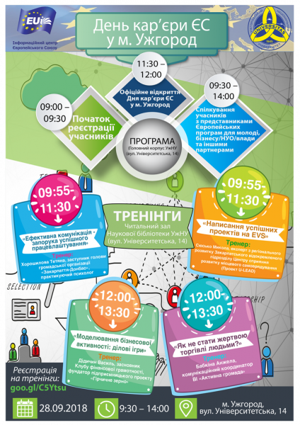 «День кар’єри ЄС» є одноденним заходом, що проводиться Інформаційним центром ЄС та УжНУ у м. Ужгород в рамках проекту «Інформаційна підтримка молоді та мереж ЄС в Україні», який є ініціативою, що фінансується Представництвом Європейського Союзу та виконується Громадською організацією «Фундація «Відкрите суспільство». Додаткова інформація: http://euroquiz.org.ua.