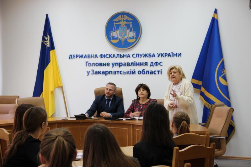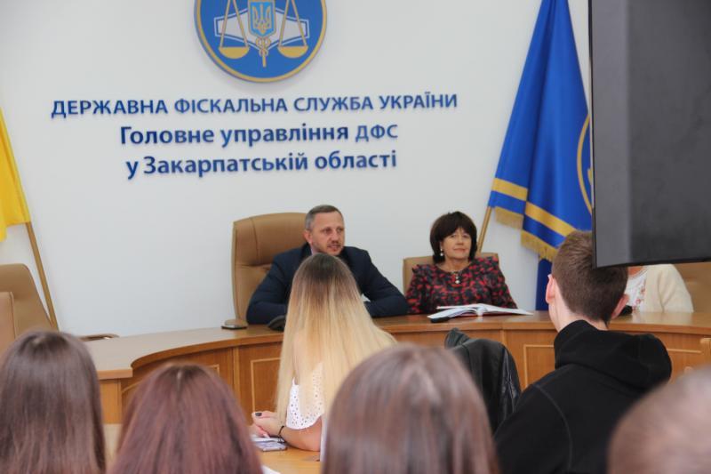 Під час спілкування студенти довідались про роботою юристів в органах ДФС області, адміністрування податків та зборів, з окремою темою «Податковий борг», дізнались як відбувається та на якому етапі зараз реформування територіальних органів ДФС у Закарпатській області.