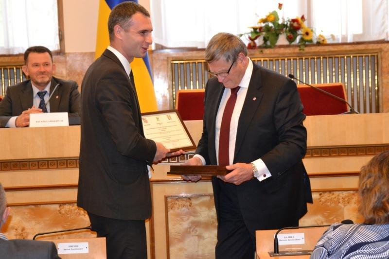 В Ужгороді гетьман Височини урочисто вручив 6 сертифікатів на автомобілі для дорожніх служб Закарпаття