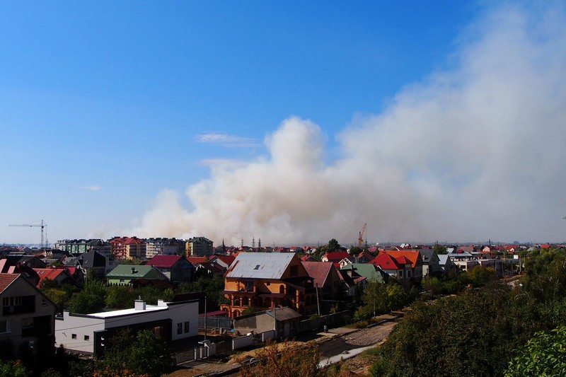 У соцмережах ужгородці діляться світлинами, на яких видно густі клуби диму, які накривають місто.