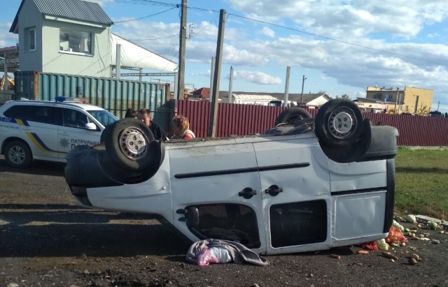 Іномарка, перекинувшись, "розсипала" сільськогосподарську продукцію на автошлях у Закарпатті
