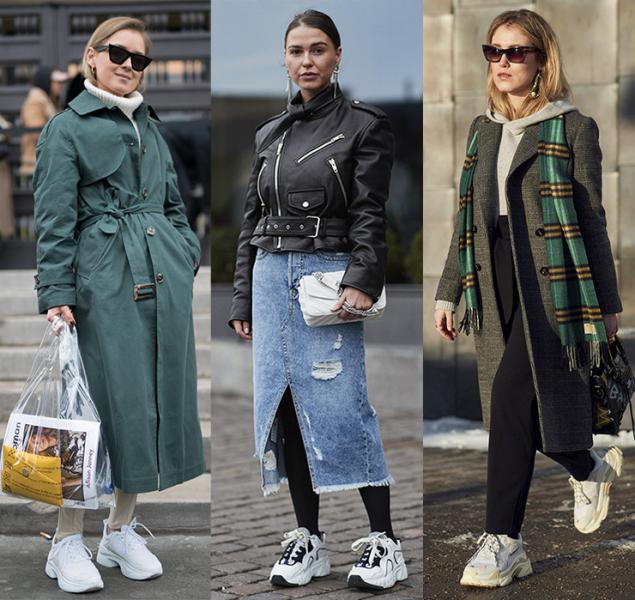 Що стосується вузьких штанів, вони чарівним чином перетворюють будь-який наряд в елегантний і жіночний. І зовсім не важливо, з якого матеріалу брючки – шкіри, джинси або бавовни – гламурний вигляд забезпечений. Особливо виграшно в такому варіанті виглядають моделі укороченого фасону, що не закривають взуття. Не повірите, але в масивних кросівках жінки можуть виглядати сексуально навіть, якщо надіти їх з міні-спідницею. Фішка у тому, що міні в поєднанні зі спортивним взуттям не виглядає провокаційно, а ніжки при цьому здаються ще більш довгими й вишуканими. Візуально витягнути фігуру і помолодшати дозволять шорти. Зручні короткі джинсові екземпляри дуже органічно поєднуються з яскравими деталями та грубою брутальною підошвою. Для холодної пори року таке взуття, як для дівчат, так і для хлопців, стане просто незамінне – воно відмінно виглядатиме з пуховиками, шубами та пальто. Також бездоганно з такими снікерами будуть красуватись короткі куртки. За рахунок їх великого об'єму всі частини тіла здаватимуться стрункішими. Взагалі мета таких новинок – комфорт і легкість, але саме брутальні екземпляри дозволять Вам бути ще й на піку популярності.