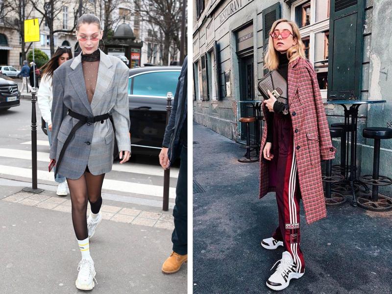 Відмінно поєднуються з масивними парами спортивні штани з лампасами, просторі джинси, толстовки з капюшоном і довгі тренчі – такий стиль стане дуже зручним для активного відпочинку. Ще один гідний образ можна створити з костюмом. Це поєднання було в топі трендів streetstyle двох минулих сезонів, адже виглядає дійсно круто. Хоч костюм і робить образ солідним, але «dad sneakers» трохи розбавляють його. Цей Look вигідно буде виглядати як на жіночому тілі, так і на чоловічому.