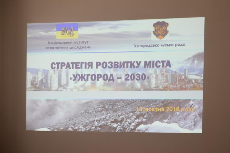 Заступник завідувача відділом регіонального розвитку НІСД, кандидат економічних наук Ольга Шевченко провела коротку презентацію Стратегії, наголосила на застосуванні SWOT- та PEST-аналізу із використанням галузевого та міждисциплінарного підходів, де зважено особливості міста – сильні сторони та ризики. Стратегічна мета розвитку Ужгорода має 4 складові. Детально прописані в документі стратегічні пріоритети, індикатори реалізації. Передбачено застосування категорій креативного та розумного міста.