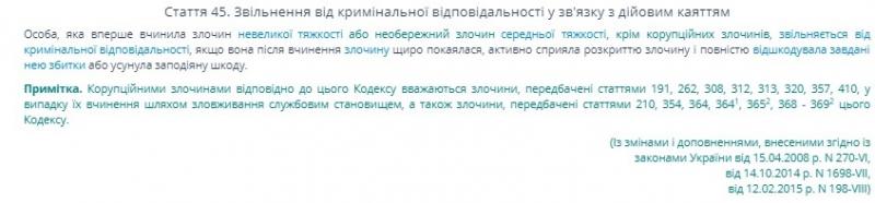 В судовому засіданні захисник обвинуваченої заявила клопотання про її звільнення від кримінальної відповідальності і припинення кримінального провадження на підставі ст. 45 КК України. Своє клопотання адвокат мотивувала тим, що держреєстратор вперше вчинила злочин невеликої тяжкості, вину визнає повністю і щиро розкаюється, активно сприяла розкриттю кримінального злочину, а тому, на думку адвоката, існують всі законні підстави для звільнення її від кримінальної відповідальності.