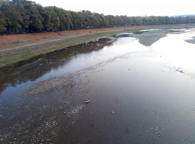Практично бездощова осінь й доволі тривале бабине літо в жовтні призвели до того, що в Ужгороді річка практично пересохла.