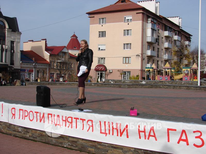 Сьогодні хустяни вийшли на центральну площу міста на мирну акцію протесту проти підняття ціни на газ. Про це повідомляє "Карпатський об’єктив".