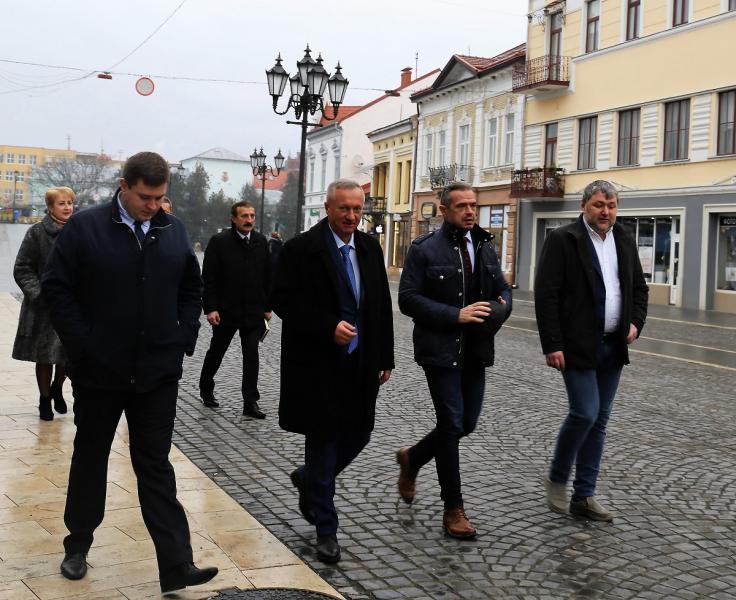 Виконуючий обов'язки голови Державного агентства автомобільних доріг України Славомір Новак розпочав свій візит на Закарпаття з короткої прогулянки Ужгородом – оглянув одні з найважливіших об'єктів, які наразі ремонтують в обласному центрі. Ознайомив з роботами голову "Укравтодору" депутат, голова комісії з питань розвитку бізнесу, виробничої інфраструктури, банківської діяльності та інвестицій Закарпатської обласної ради Андрій Андріїв. Він, зокрема, разом із керівником відомства оглянув хід виконання будівельних робіт на площі Шандора Петефі – тут саме викладають бруківкою проїжджу частину.