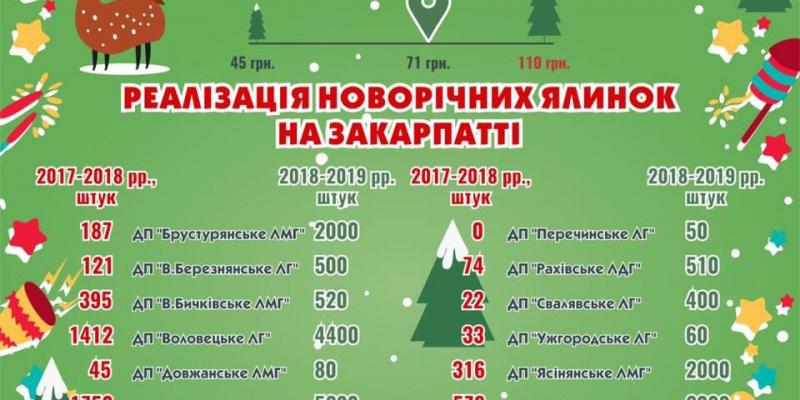 Цьогоріч лісівники планують реалізувати 21020 тис. смерек та ялин. Середня ціна коливатиметься від 45 до 110 грн. Лідерами залишаються такі лісові господарства: ДП «Воловецьке ЛГ», ДП «Міжгірське ЛГ», ДП «Ясінянське ЛМГ», ДП «Тячівське ЛГ», ДП «Верхньогірське ЛГ» та ДП «Брустурянське ЛМГ». Деревця вирощують на спеціальних плантаціях або зрізають під час розчищення просік, смуг відведення ліній електропередачі.