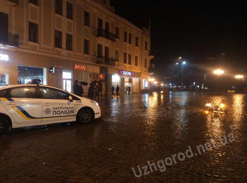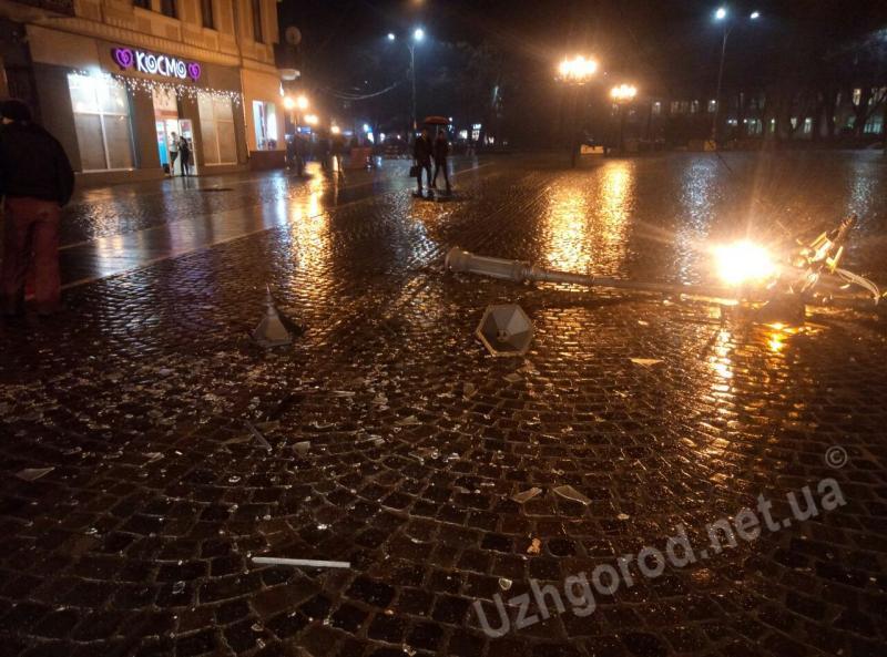 Машиною збив ліхтар у центрі Ужгорода і втік (ФОТО)