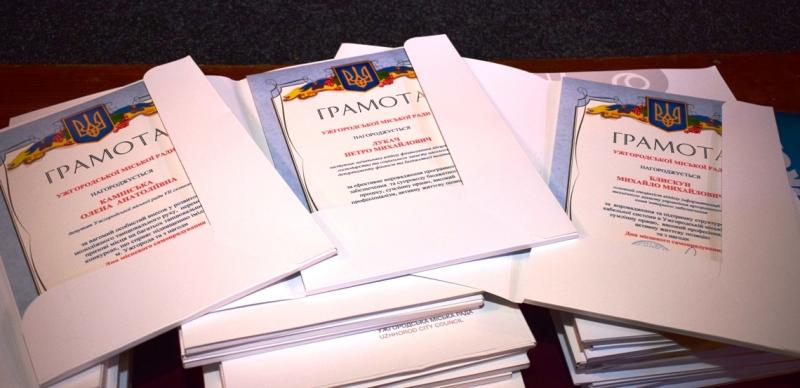 Почесною грамотою Закарпатської облради відзначили секретаря Ужгородської міської ради Андріану Габор та депутата міськради Олесю Афанасьєву. Подяку облради вручили заступнику Ужгородського міського голови Василю Гомонаю, депутату міськради Андрію Рибі.