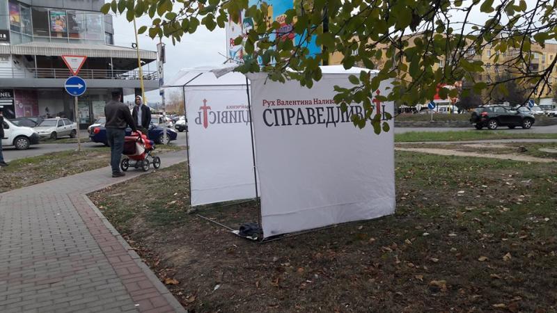 У листопаді спостерігачі ОПОРИ зафіксували роботу кількох наметів на вулицях Ужгорода, в яких роздавали партійну друковану продукцію. Це були намети від політичних сил «Об’єднання «Самопоміч», «Народний фронт», «Справедливість» та ВО «Батьківщина».