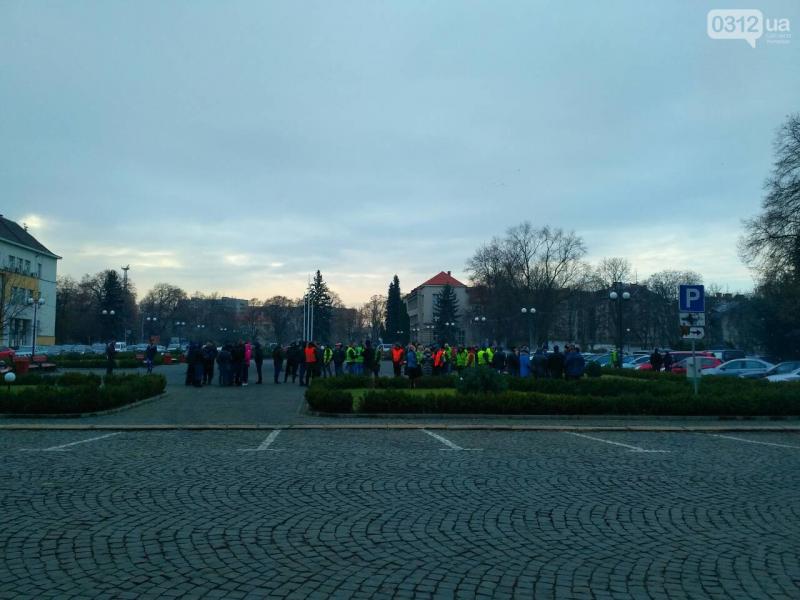 Повернення "євробляхарів": під Закарпатською ОДА зібрались десятки мітингувальників у свiтловiдбиваючих жилетах
