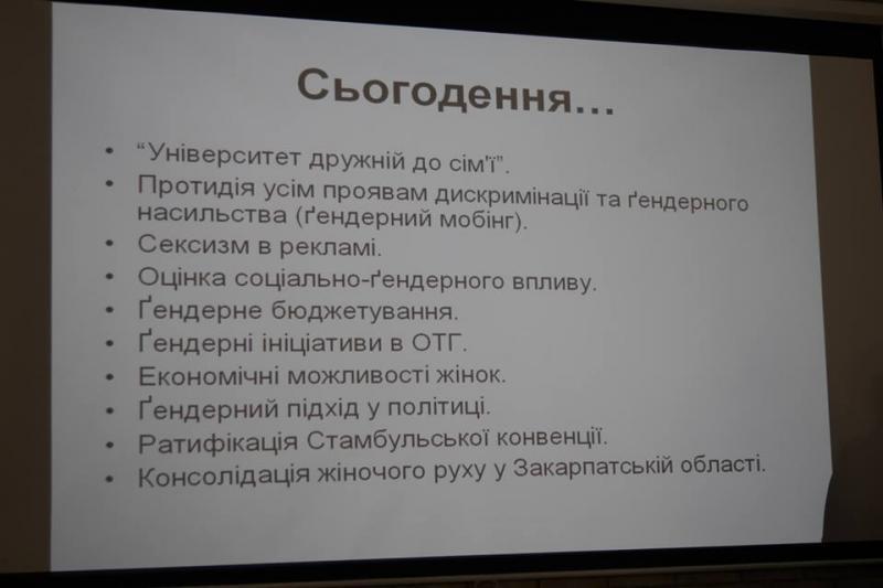Згадали становлення ґендерної політики на Закарпатті, говорили про перші ініціативи центру, його проекти, зокрема проведення заходів із ґендерного спортивного орієнтування, найвисокогірніші тренінги, відповідальне батьківство, школу підготовки до шлюбу, виявлення сексизму в рекламі тощо. Окреслили й те, чим живе Центр ґендерної освіти сьогодні.